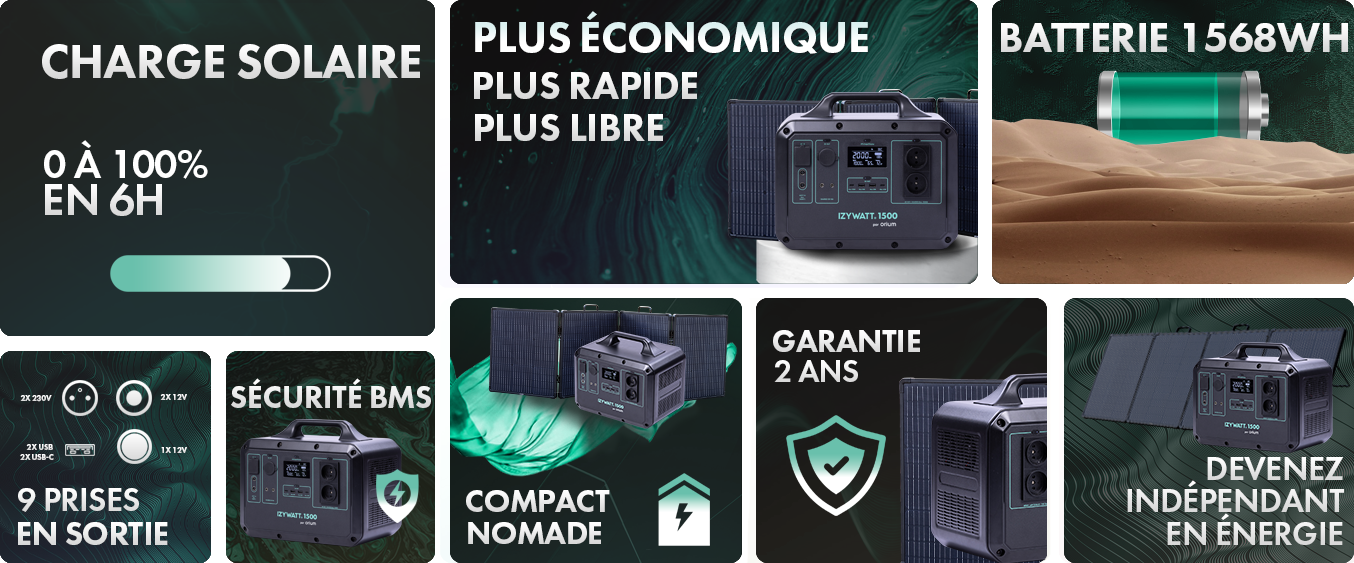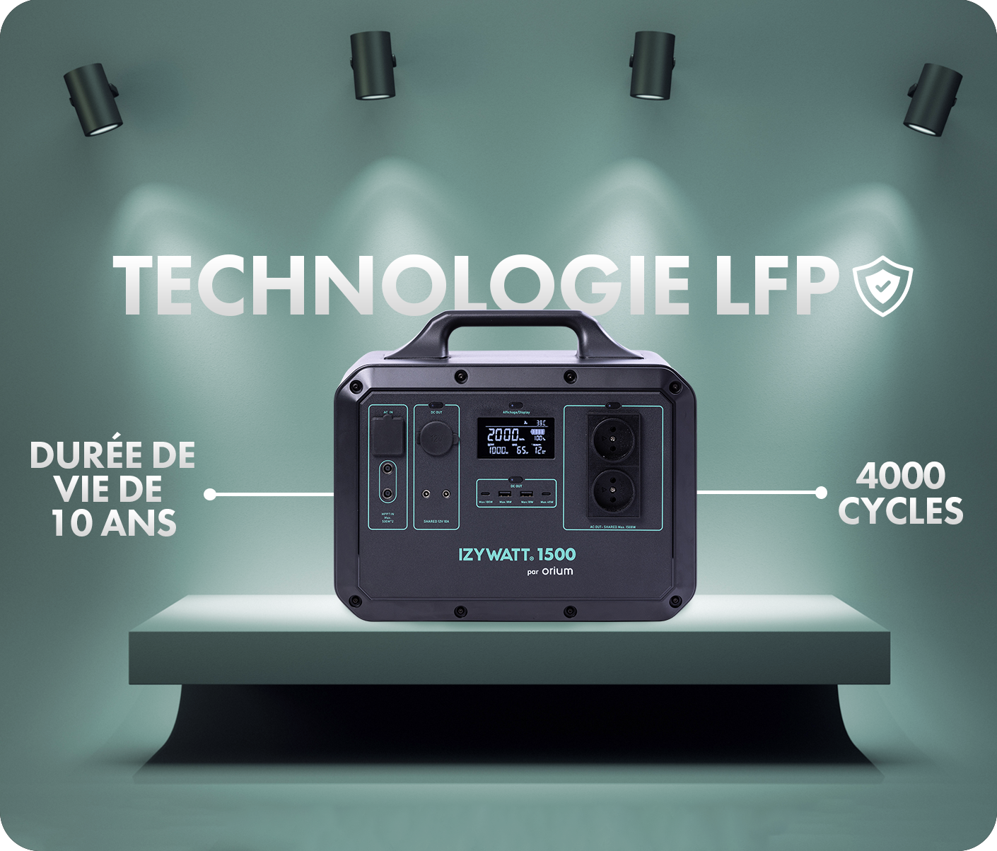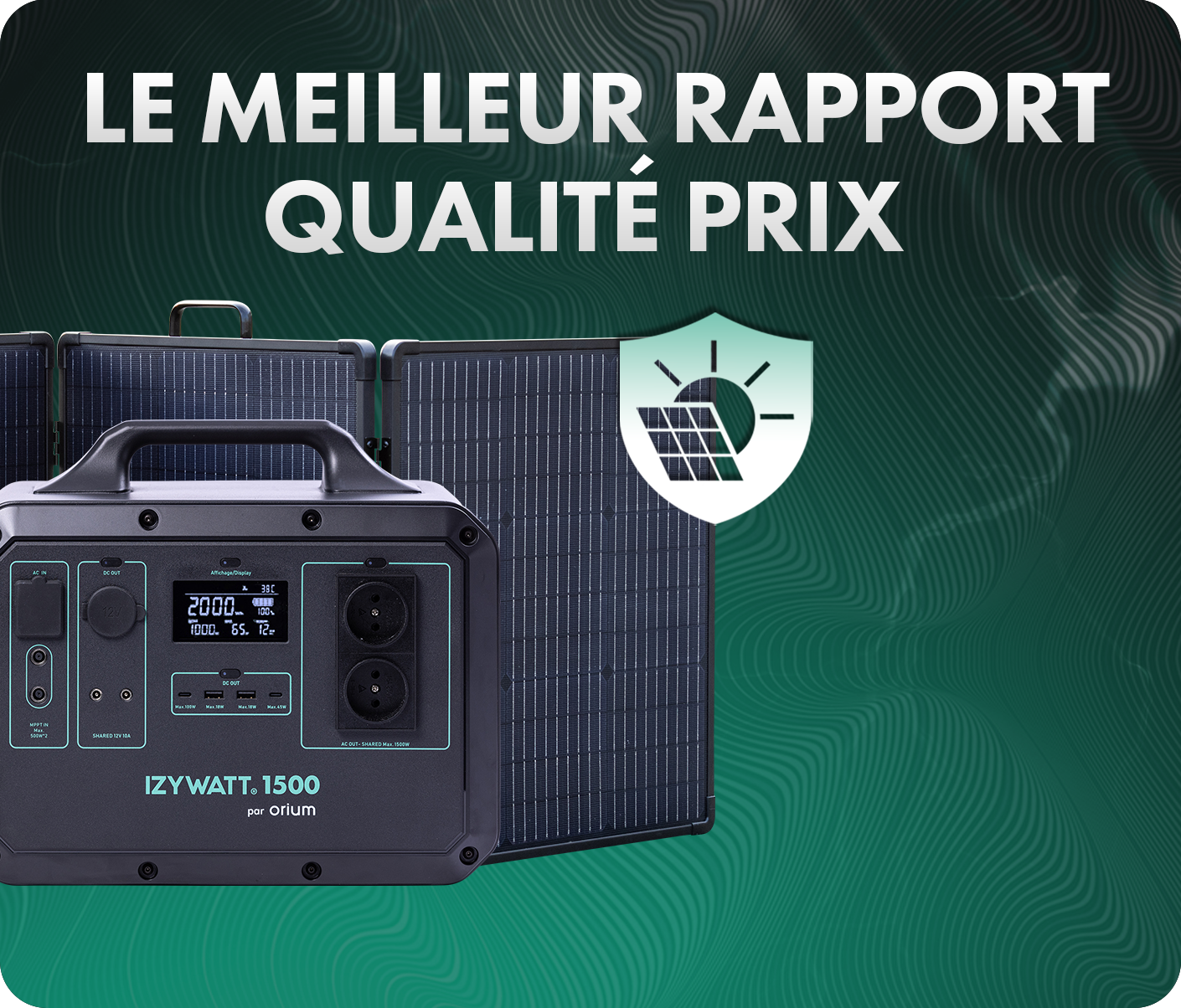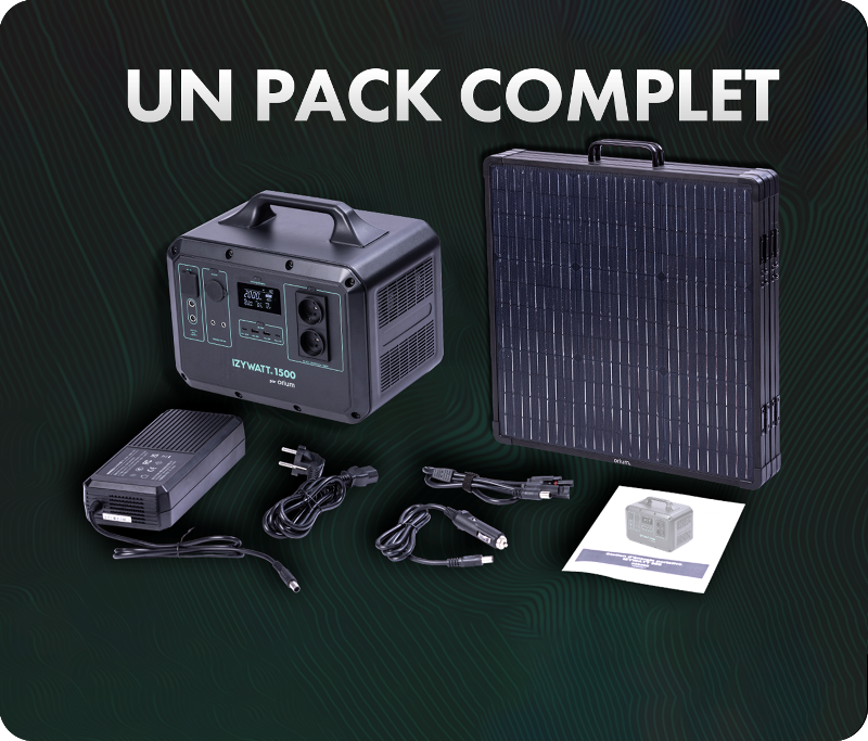 Pack générateur solaire LFP (lithium-fer-phosphate) IZYWATT 1500 et panneau solaire pliant cadré 315W
